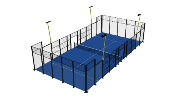 Structural posts positioned around the court’s perimeter ensure exceptional rigidity and stress resistance.